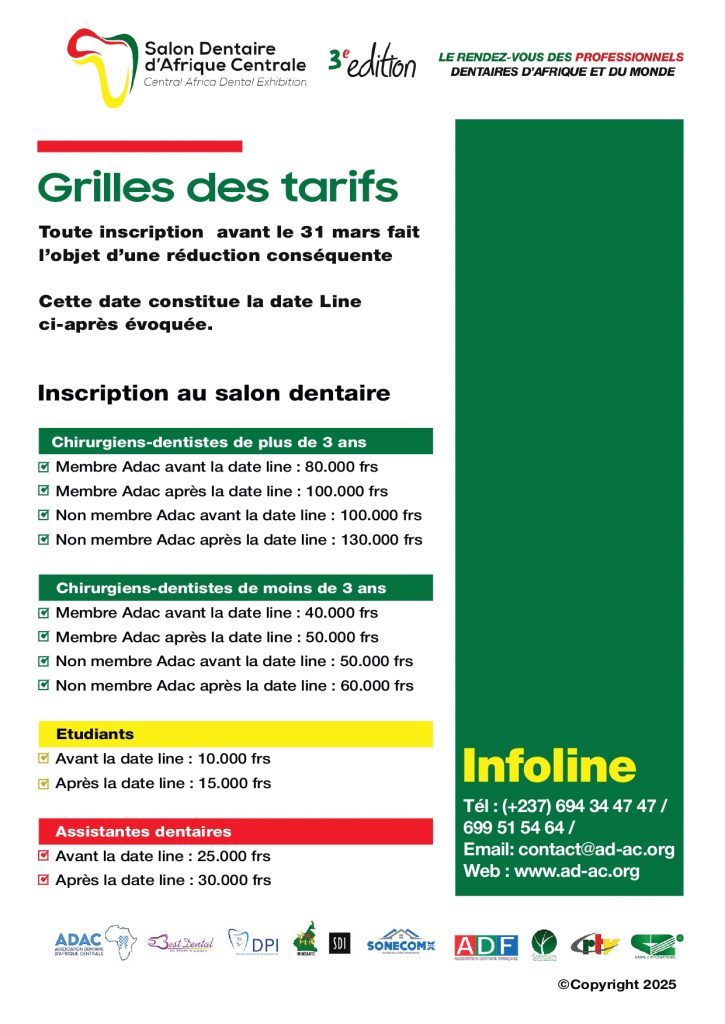 Inscrivez-vous dès maintenant à la 3ème édition du salon dentaire d’Afrique Centrale et profitez des réductions.